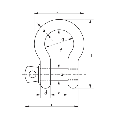 | Working Load Limit (t) | Diameter Bow a (mm) | Diameter Pin b (mm) | Diameter Eye c (mm) | With Eye d (mm) | Width Inside e (mm) | Length Inside f (mm) | Width Bow g (mm) | Length h (mm) | Length Bolt i (mm) | Width k (mm) | Weight Each (kg) |