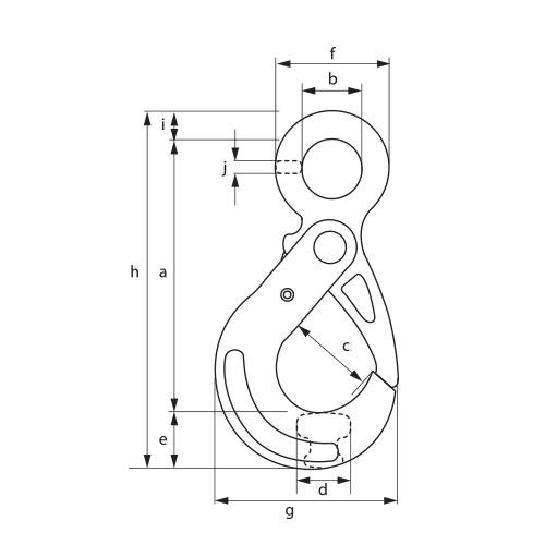 | For Chain Diameter (mm) | Working Load Limit t | Length a (mm) | Diameter Inside Eye b (mm) | Width Opening c (mm) | Thickness d (mm) | Width e (mm) | Width Outside f (mm) | Wisth Outside g (mm) | Length h (mm) | Width i (mm) | Thickness j (mm) | Weight Each kg |